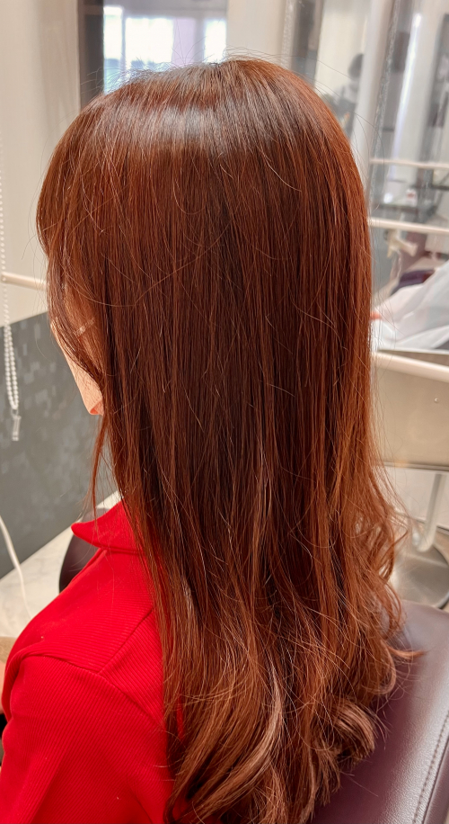 レッドオレンジの明るめで染めました。